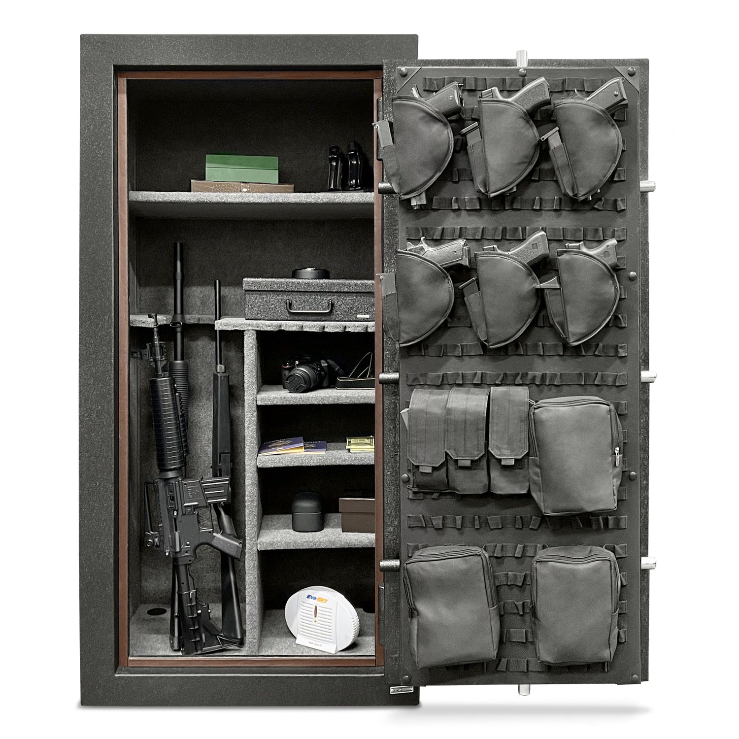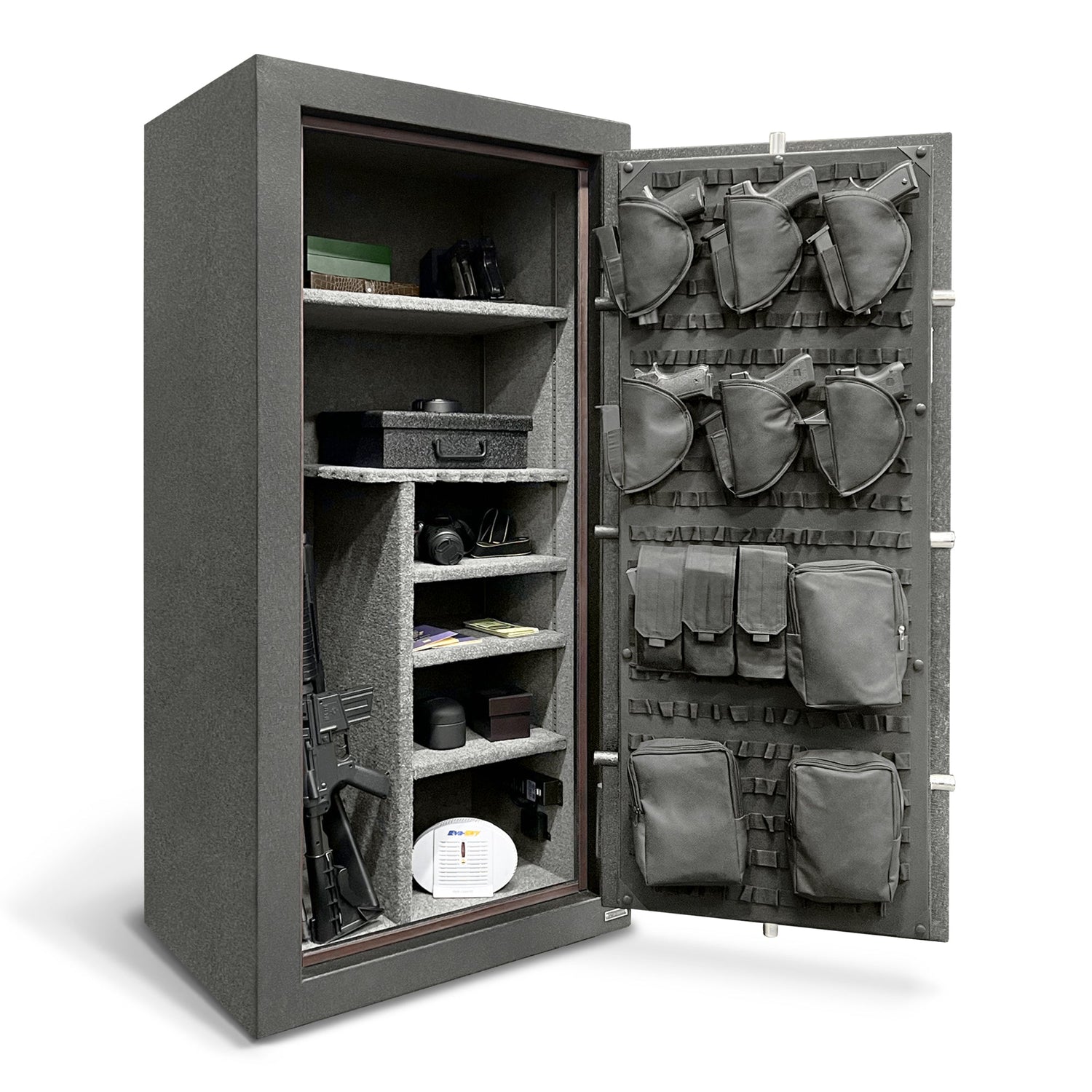 An additional feature that makes the Stealth Essential Gun Safe better than the competition is the customizable Molle interior door organizer that helps free up additional space in the safe. This system is far better than sewn-in pockets as it allows for full customization. Want your pistol holsters at the bottom of the organizer? No problem. Want them lined up on the right side? No problem. Want to get rid of all the included accessories and use your own? Again, no problem! You can add and remove accessories as you need with the convenient strap and snap system.