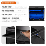 Smart control panel houses a large built-in LCD screen that provides visual feedback on the internal temperature and humidity, as well as the lock/unlock and low battery statuses. 4 LED interior lights illuminate when the safe is unlocked by electronically, improving visibility and making it easier to pick up and place items in the dark. The samrt hand gun safe is designed with a built-in USB Type-C port for use in emergency situations.